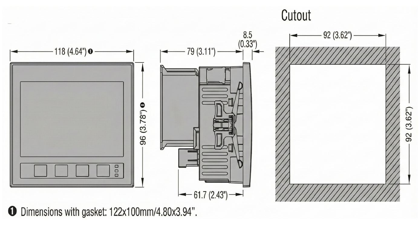 | Mount | Flush mount cut out 92x92mm | |||